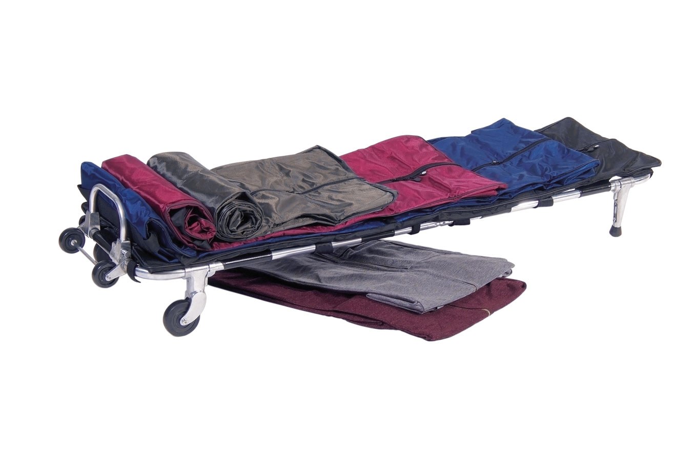 The image shows the stretcher with the black cover and one of the transport covers described on the following page. Please note that the transport cover is not included with the replacement cover.