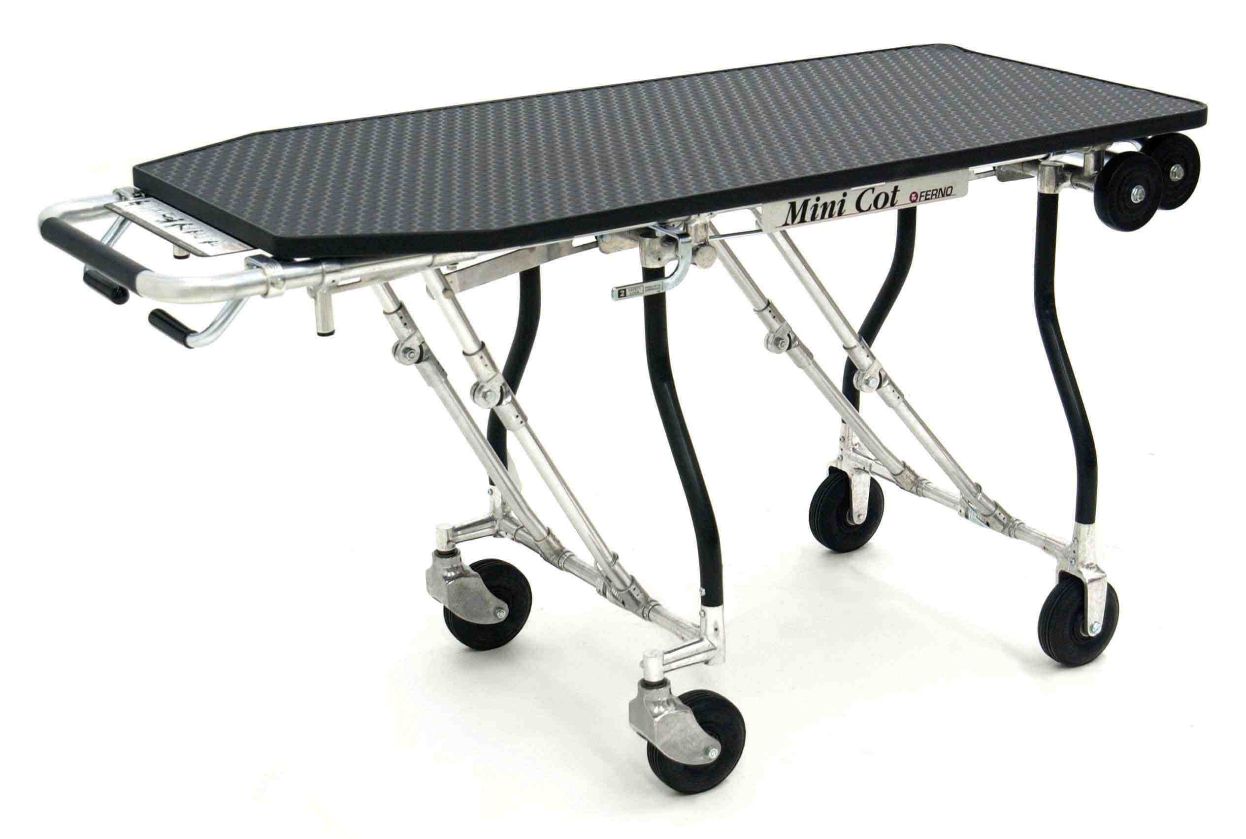 Compact and lightweight, designed for pet removal or small body retrieval. Its One-Man®, roll-in style allows one person to perform retrieval and has extendable loading wheels for easy loading and unloading. Special release levers make it possible to raise and lower the cot without assuming the full weight of the cot and body.
