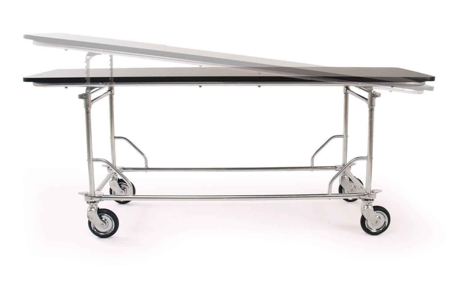 An exclusive, one-hand release on the Model 36 allows you to quickly adjust the table height from 81 cm to 97 cm. The Model 36 rolls on four swivel wheels that lock directionally for stability.